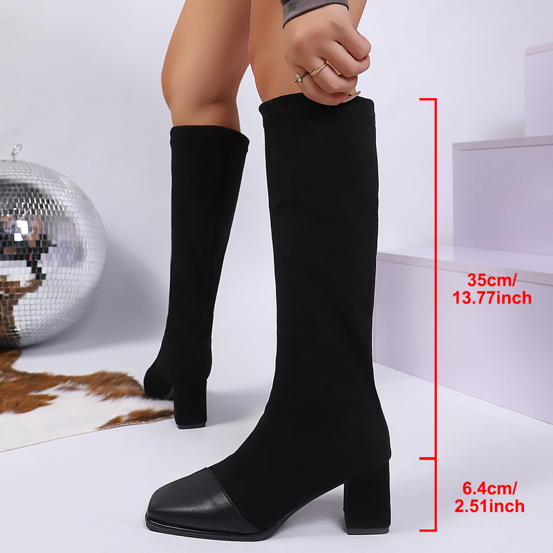 女靴子靴子韩版潮时尚保暖防滑长靴圆头粗跟