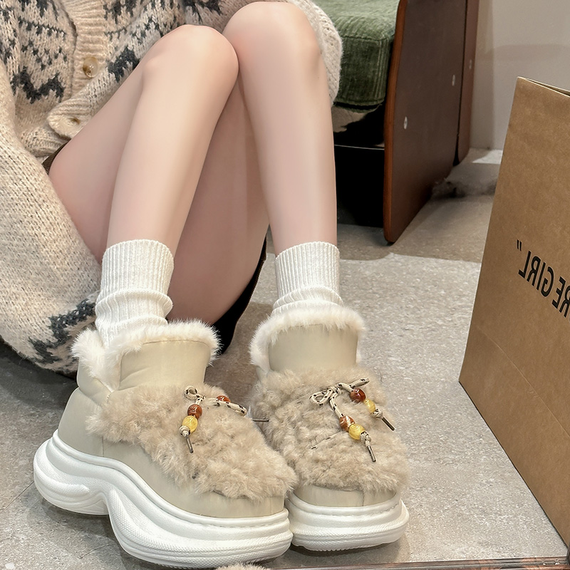 女靴子靴子韩版潮时尚保暖防滑绒面短靴圆头