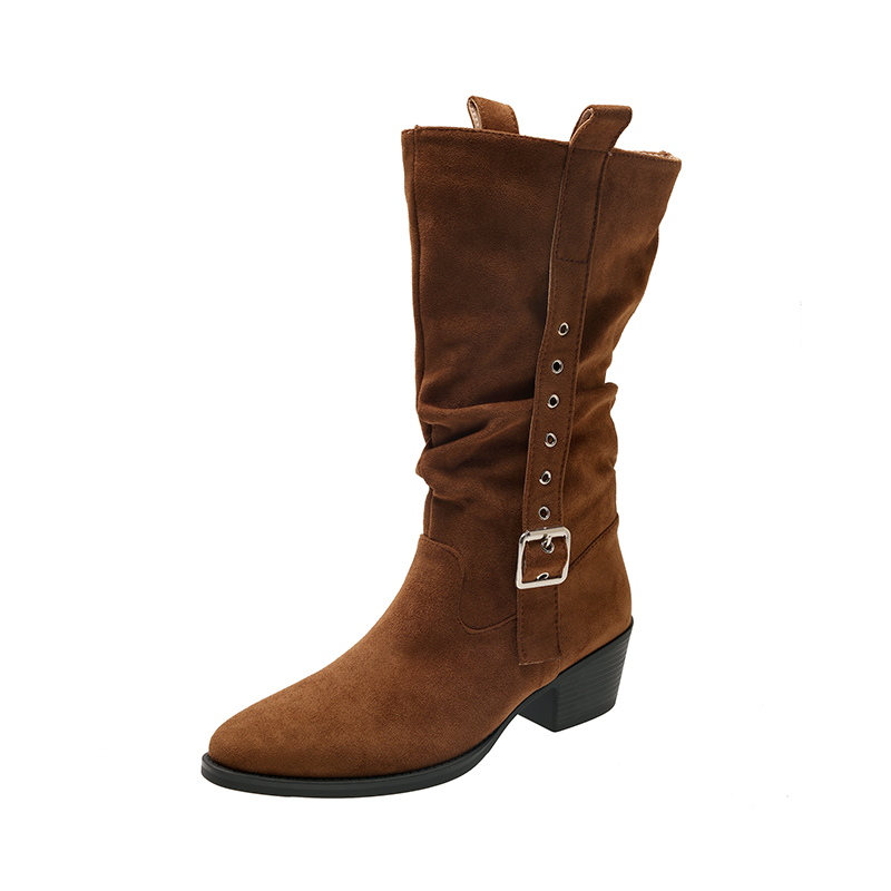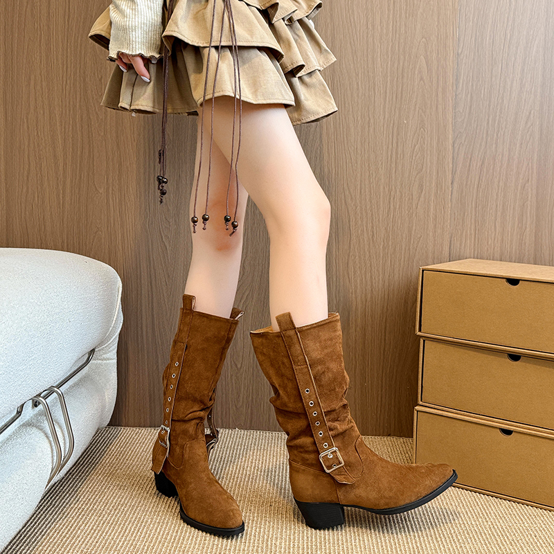 女靴子靴子韩版潮时尚保暖防滑长靴圆头粗跟