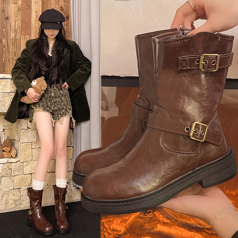 女靴子靴子韩版潮时尚保暖防滑短靴圆头粗跟
