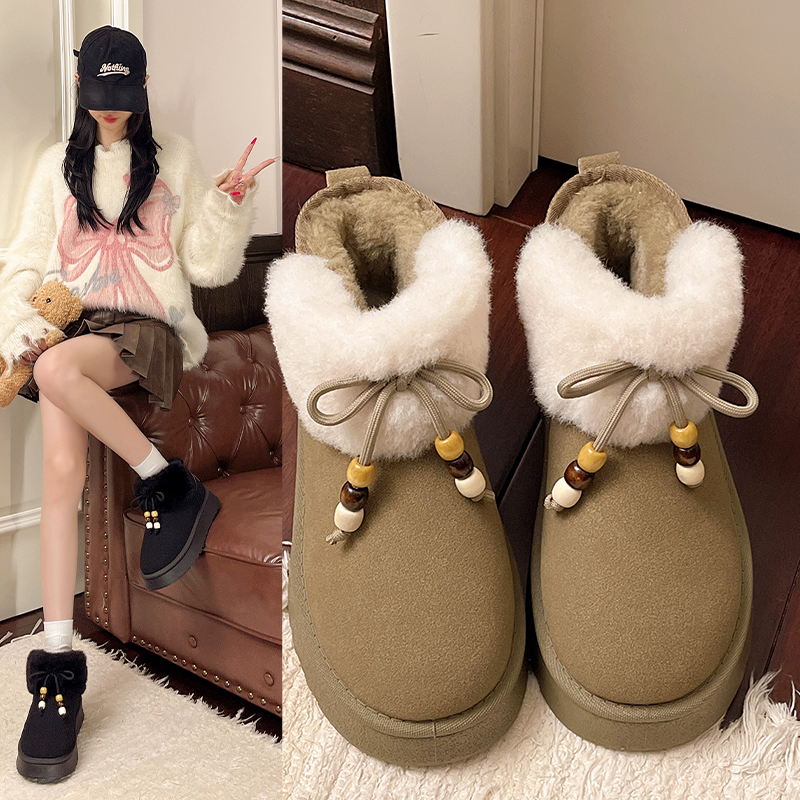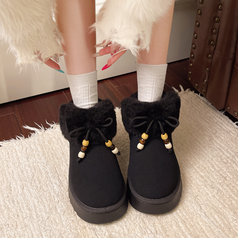 女靴子靴子韩版潮时尚保暖防滑绒面短靴圆头