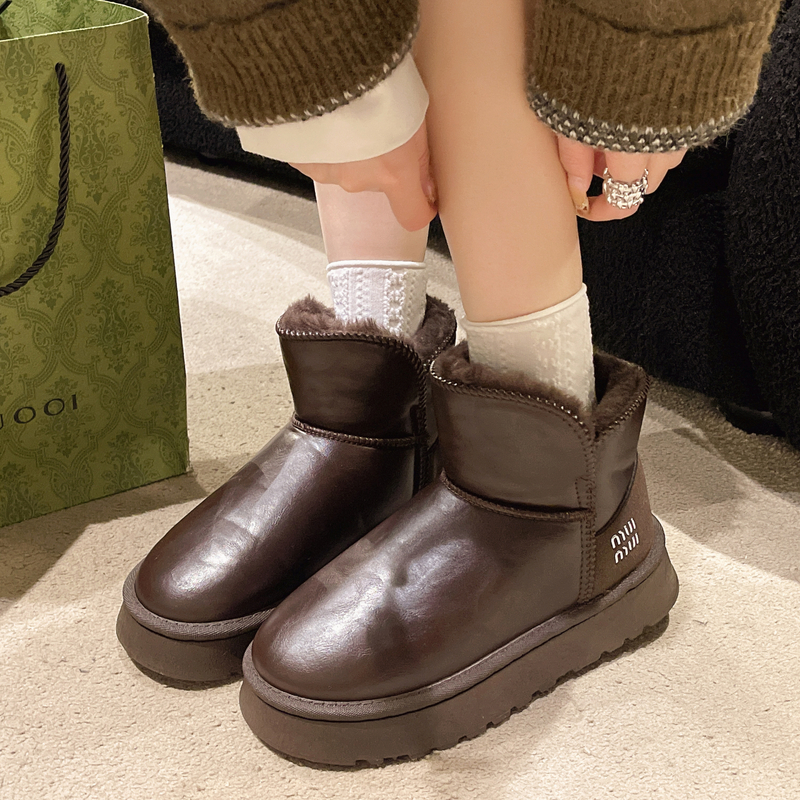 女靴子靴子韩版潮时尚保暖防滑绒面短靴圆头