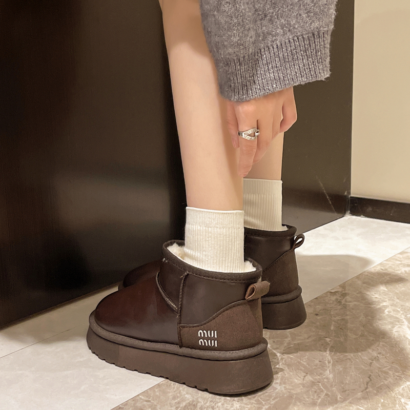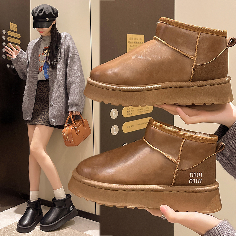 女靴子靴子韩版潮时尚保暖防滑绒面短靴圆头