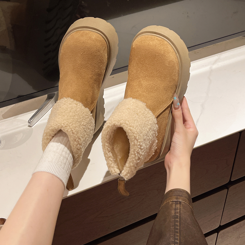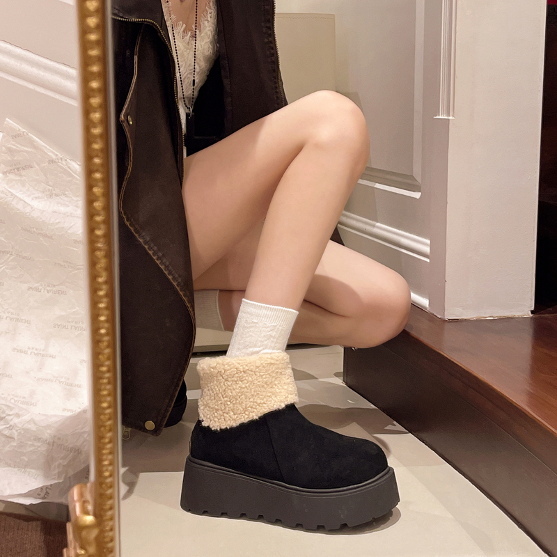 女靴子靴子韩版潮时尚保暖防滑绒面短靴圆头