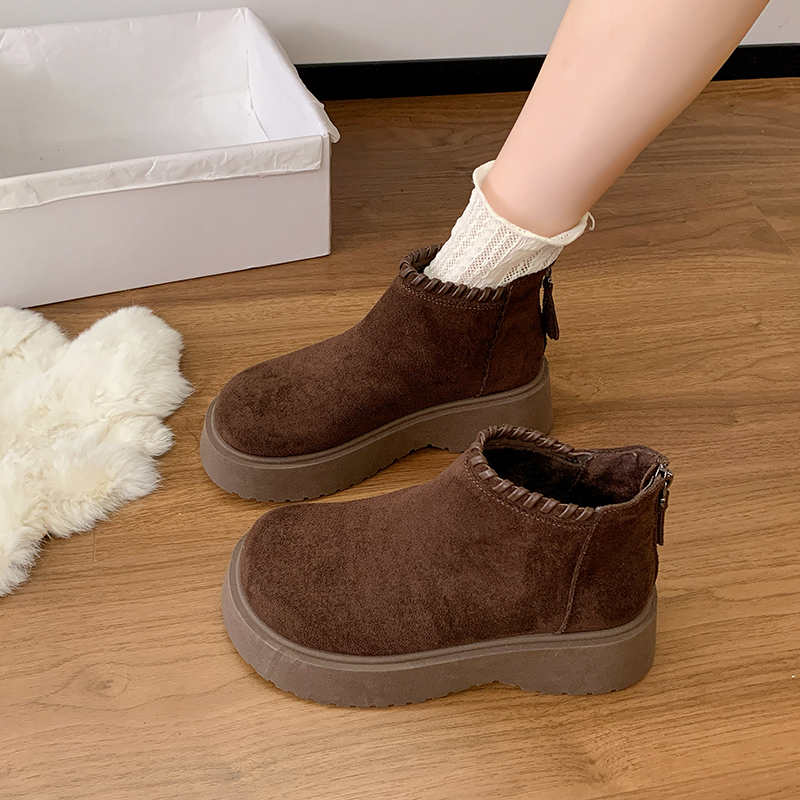 女靴子靴子韩版潮时尚保暖防滑短靴圆头粗跟