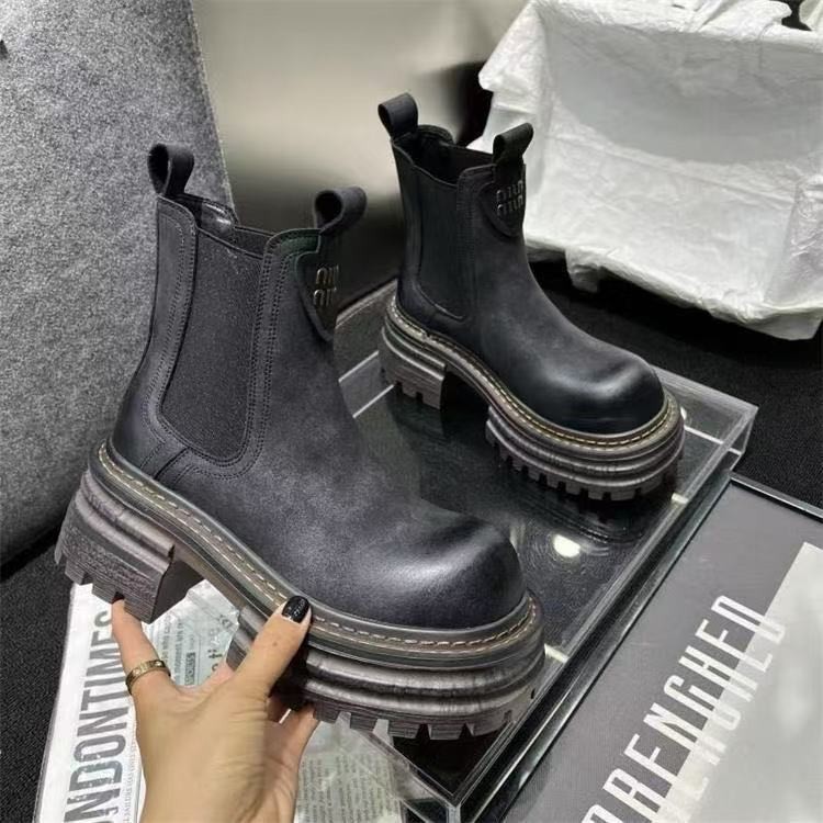 女靴子靴子韩版潮时尚保暖防滑短靴圆头粗跟