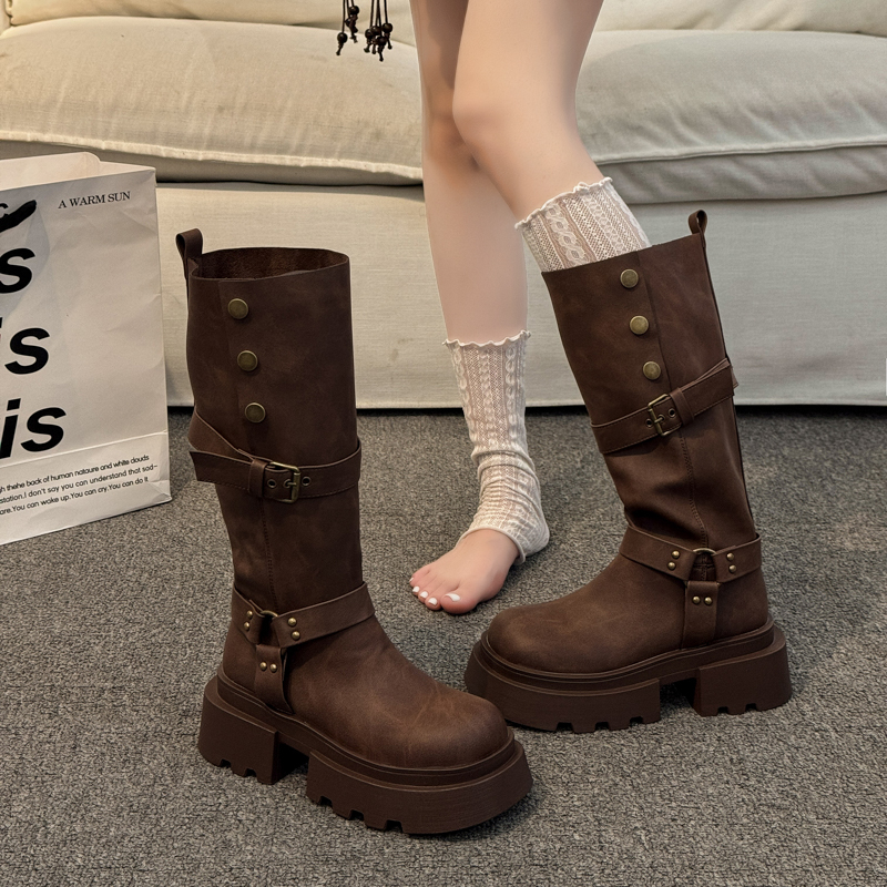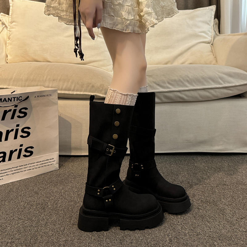 女靴子靴子韩版潮时尚保暖防滑长靴圆头粗跟