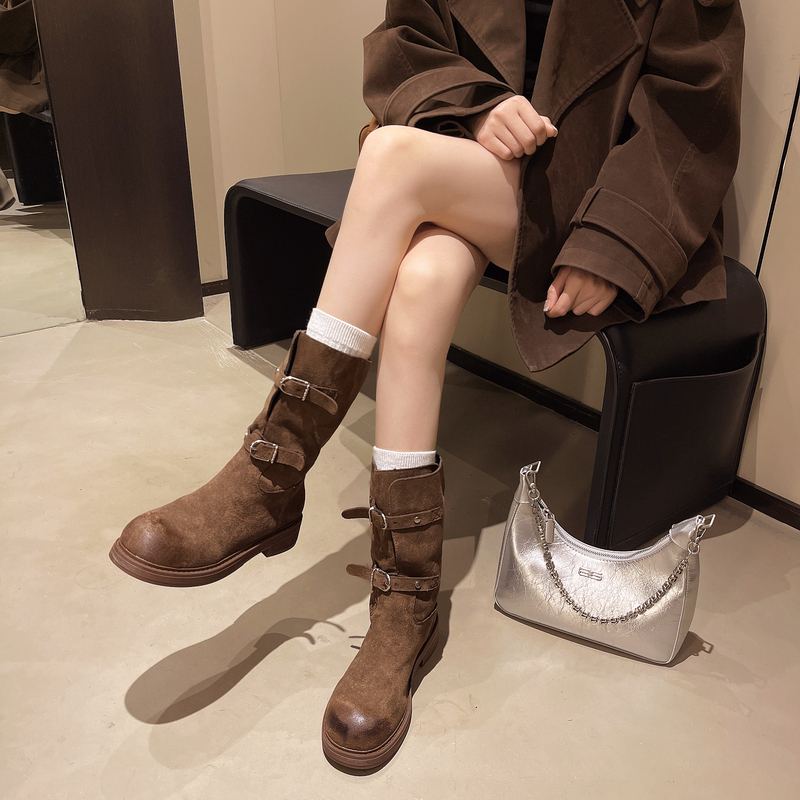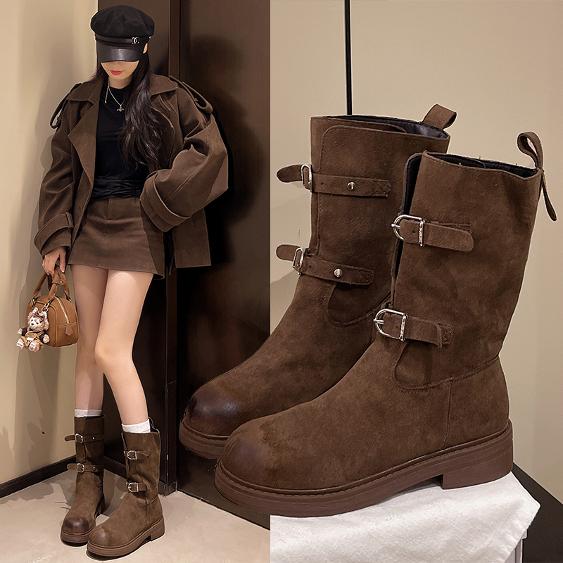 女靴子靴子韩版潮时尚保暖防滑短靴圆头粗跟