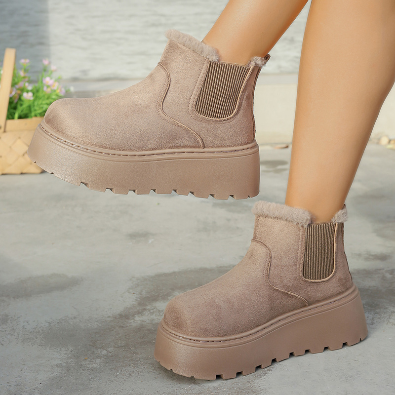 女靴子靴子韩版潮时尚保暖防滑绒面短靴圆头
