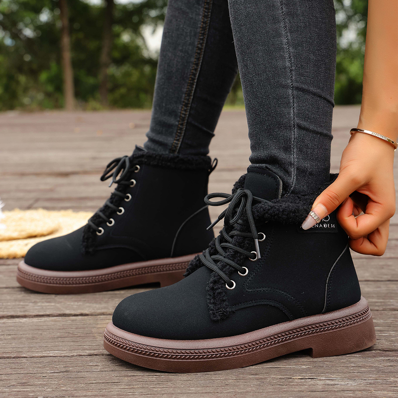 女靴子靴子韩版潮时尚保暖防滑短靴圆头粗跟