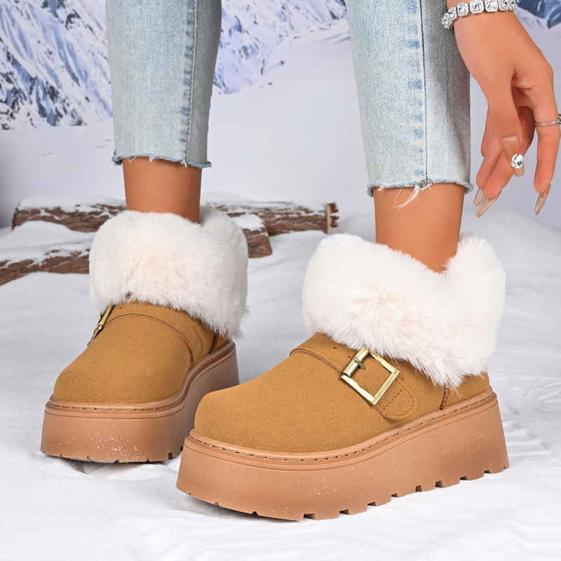女靴子靴子韩版潮时尚保暖防滑绒面短靴圆头