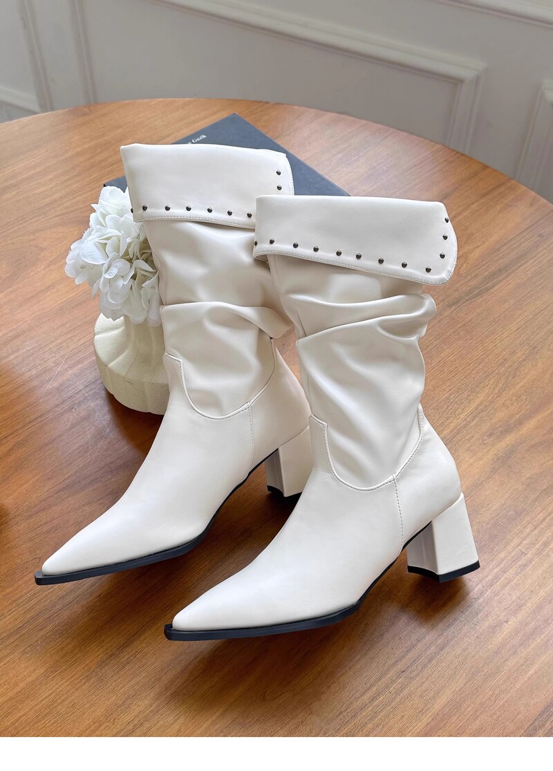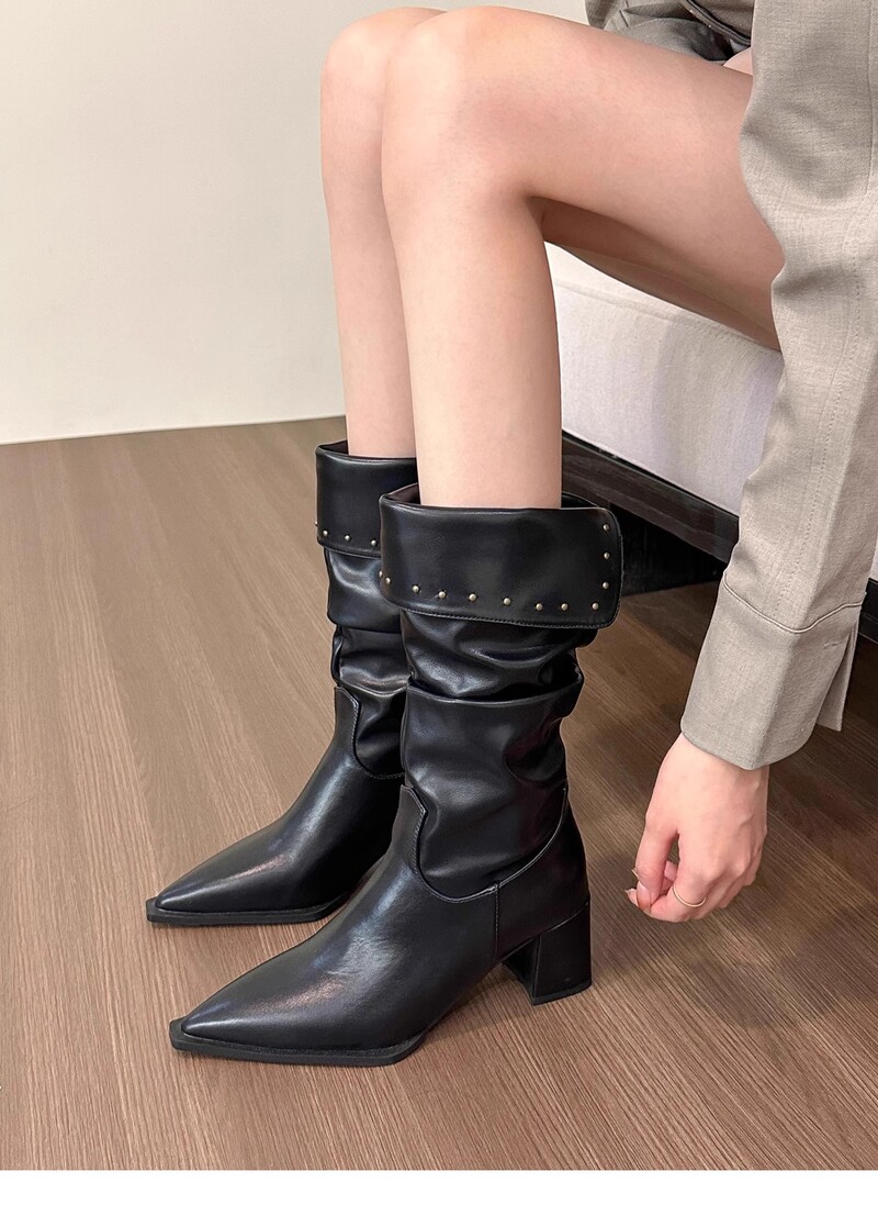 女靴子靴子韩版潮时尚保暖防滑中筒靴铆钉尖头粗跟