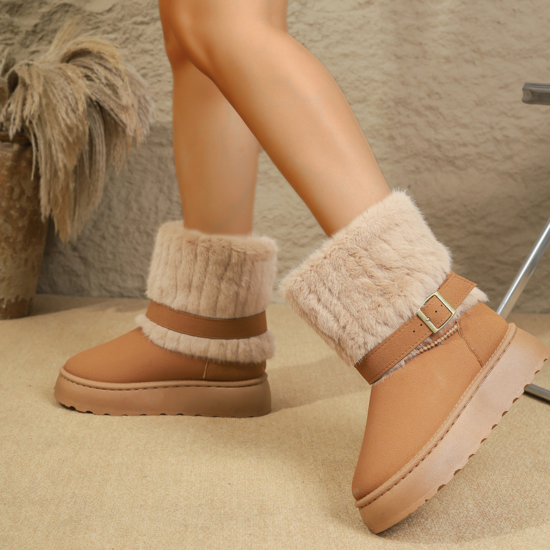 女靴子靴子韩版潮时尚保暖防滑绒面短靴圆头