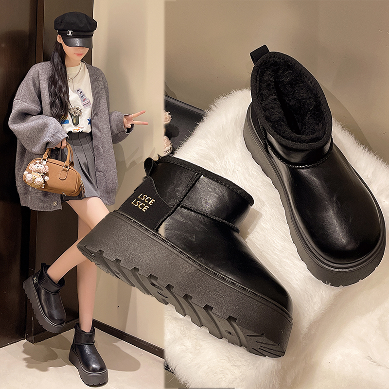 女靴子靴子韩版潮时尚保暖防滑绒面短靴圆头