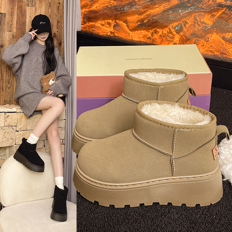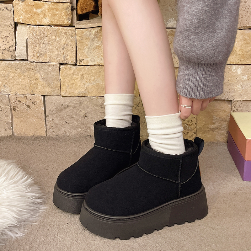 女靴子靴子韩版潮时尚保暖防滑绒面短靴圆头