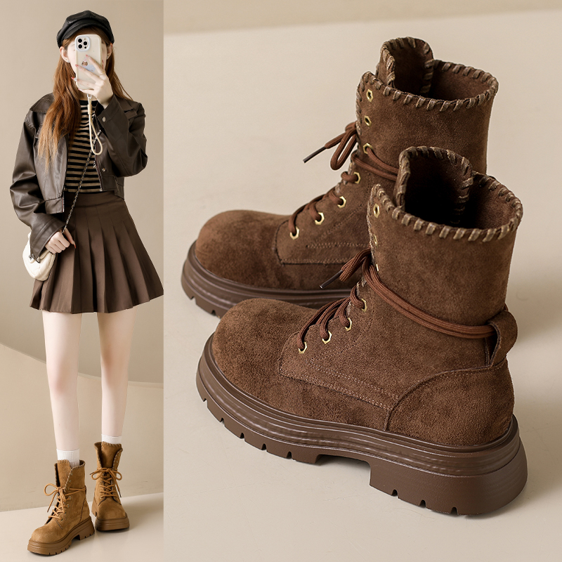 女靴子靴子韩版潮时尚保暖防滑短靴圆头粗跟