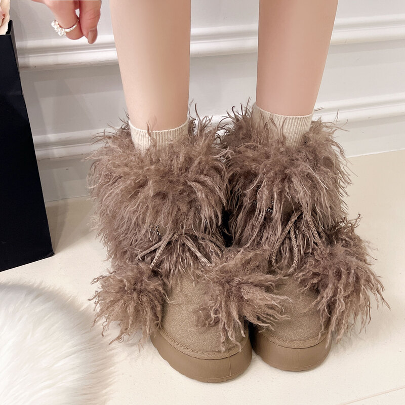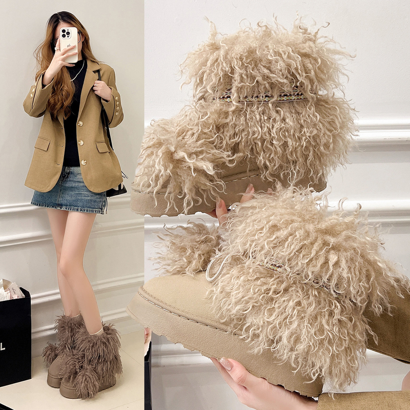 女靴子靴子韩版潮时尚保暖防滑绒面短靴圆头