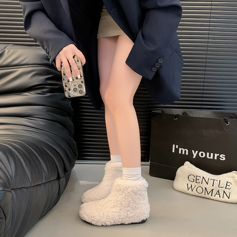 女靴子靴子韩版潮时尚保暖防滑绒面短靴圆头