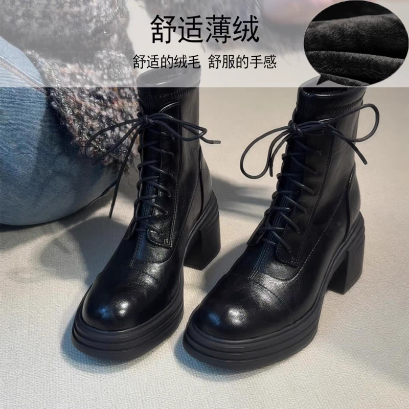女靴子靴子韩版潮时尚保暖防滑短靴圆头粗跟