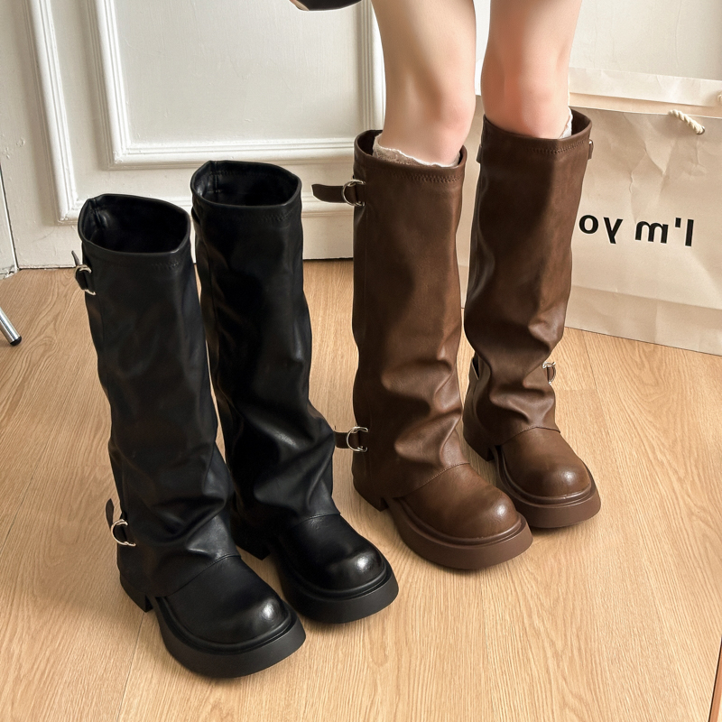 女靴子靴子韩版潮时尚保暖防滑长靴圆头粗跟