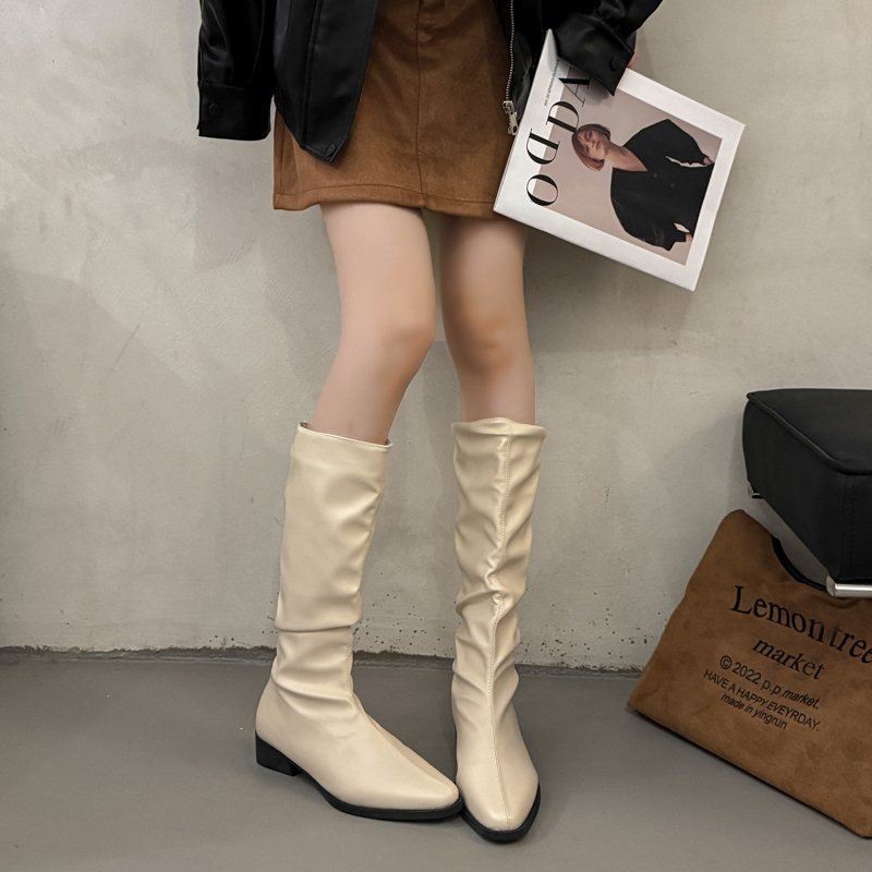 女靴子靴子韩版潮时尚保暖防滑长靴圆头粗跟