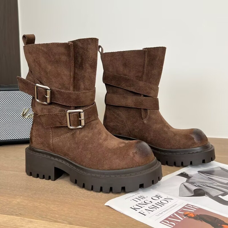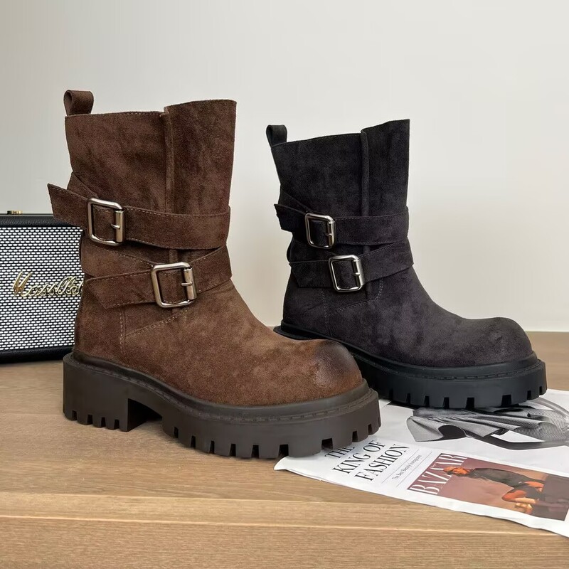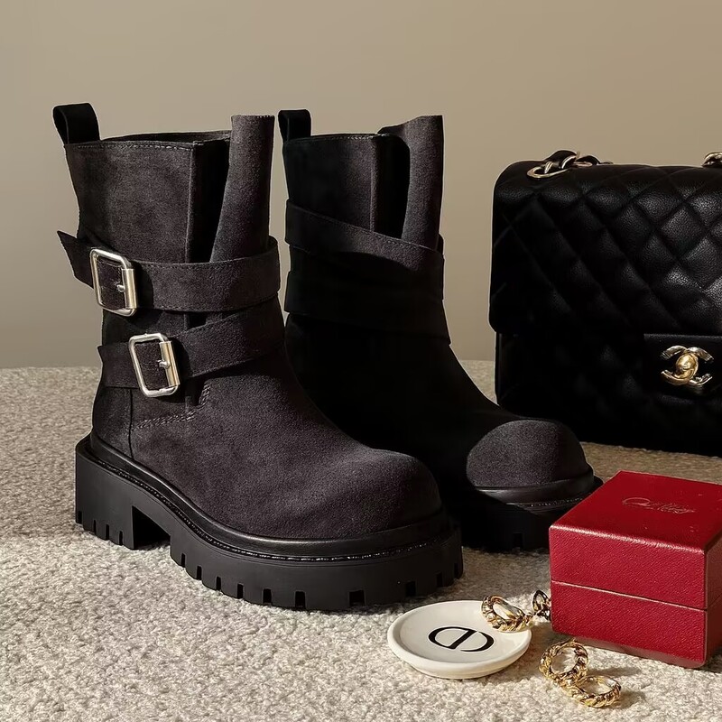 女靴子靴子韩版潮时尚保暖防滑短靴圆头粗跟