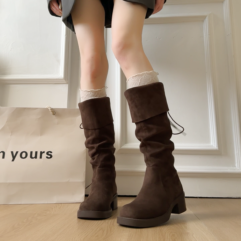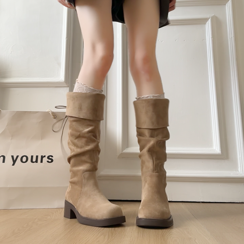 女靴子靴子韩版潮时尚保暖防滑长靴圆头粗跟