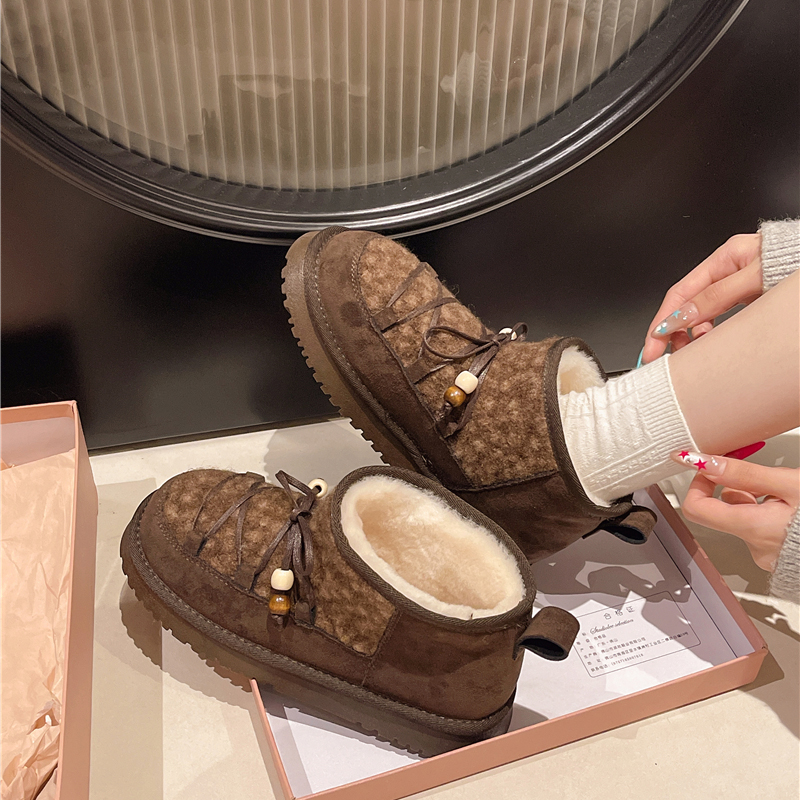 女靴子靴子韩版潮时尚保暖防滑绒面短靴圆头