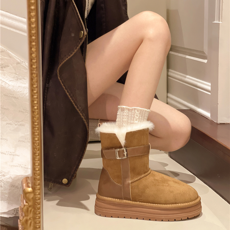 女靴子靴子韩版潮时尚保暖防滑绒面短靴圆头