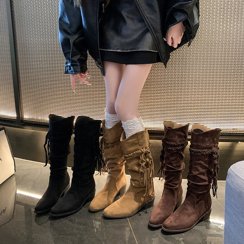 女靴子靴子韩版潮时尚保暖防滑长靴圆头粗跟