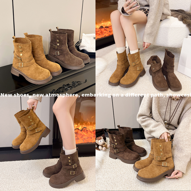 女靴子靴子韩版潮时尚保暖防滑短靴圆头粗跟