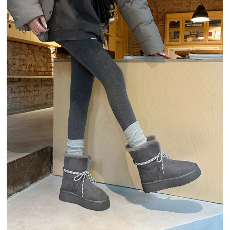 女靴子靴子韩版潮时尚保暖防滑绒面短靴圆头