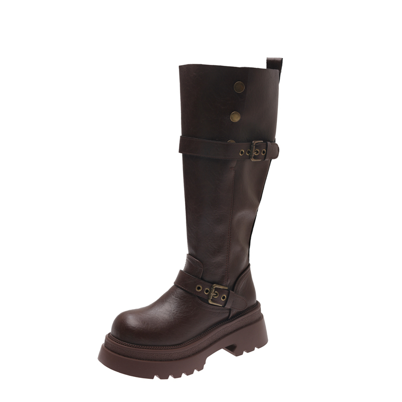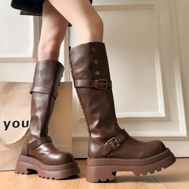 女靴子靴子韩版潮时尚保暖防滑长靴圆头粗跟