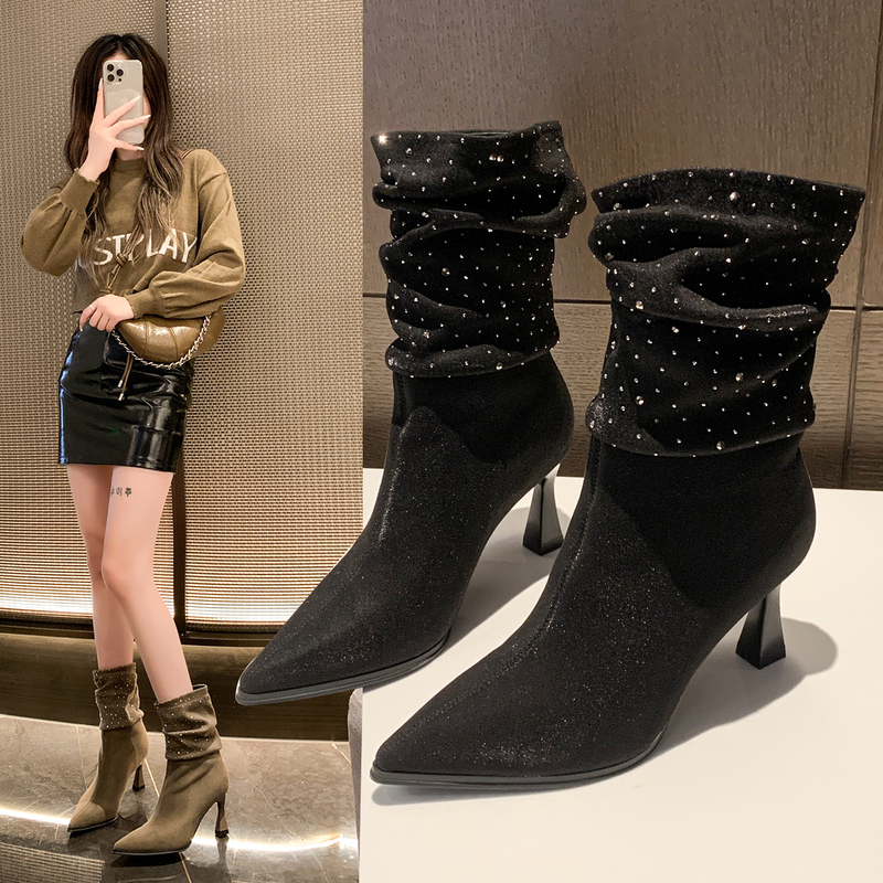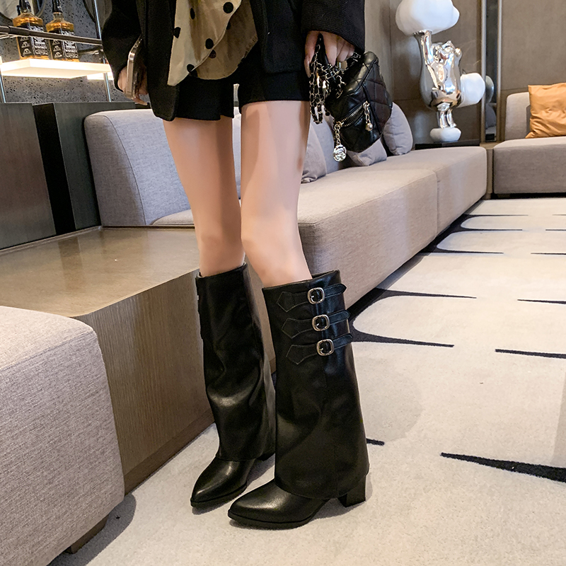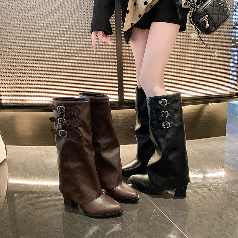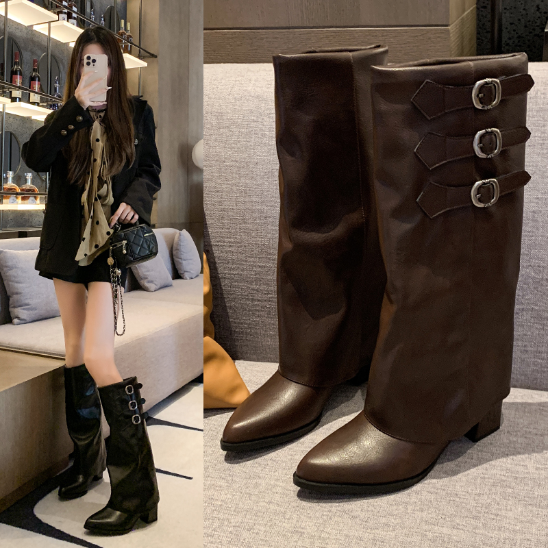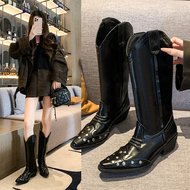 女靴子靴子韩版潮时尚保暖防滑长靴圆头粗跟
