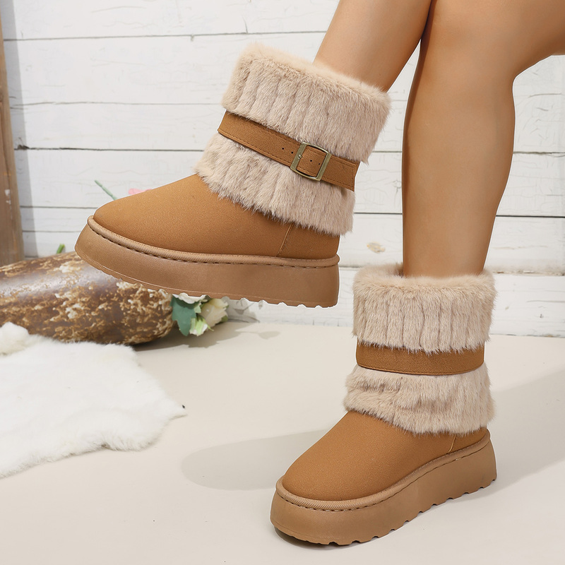 女靴子靴子韩版潮时尚保暖防滑绒面短靴圆头