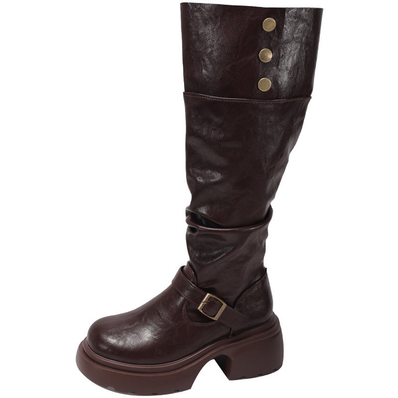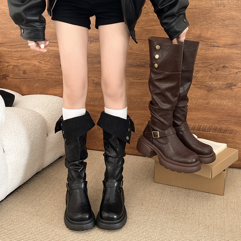 女靴子靴子韩版潮时尚保暖防滑长靴圆头粗跟
