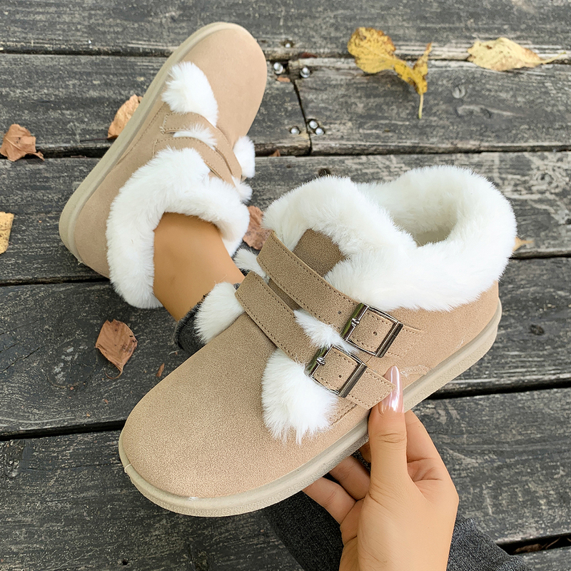 女靴子靴子韩版潮时尚保暖防滑绒面短靴圆头
