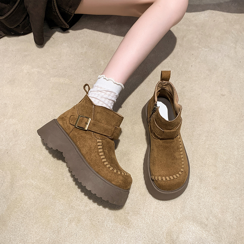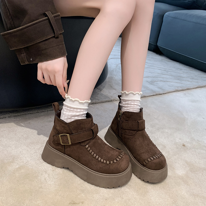 女靴子靴子韩版潮时尚保暖防滑短靴圆头粗跟