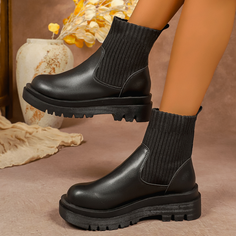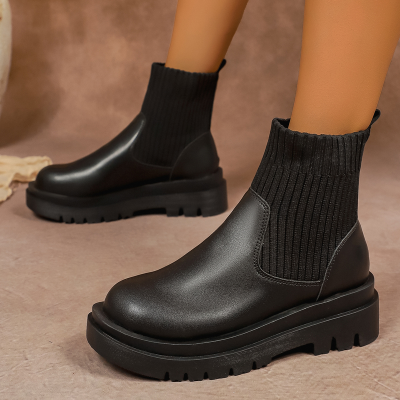 女靴子靴子韩版潮时尚保暖防滑短靴圆头粗跟