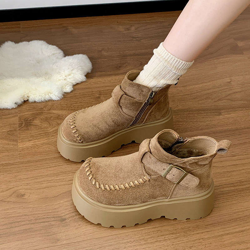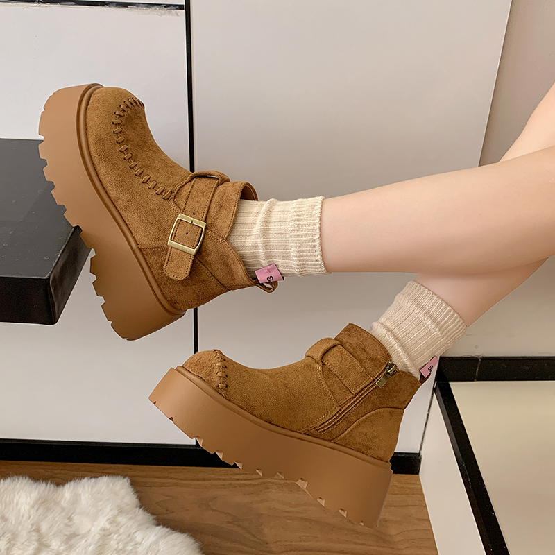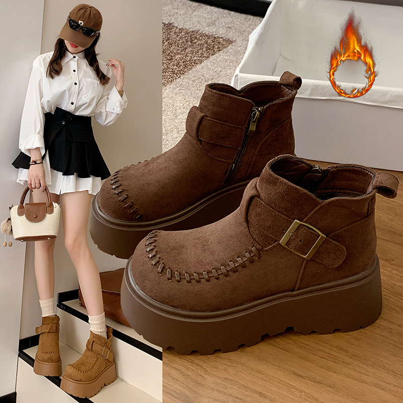 女靴子靴子韩版潮时尚保暖防滑短靴圆头粗跟