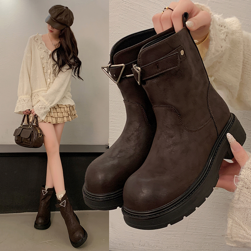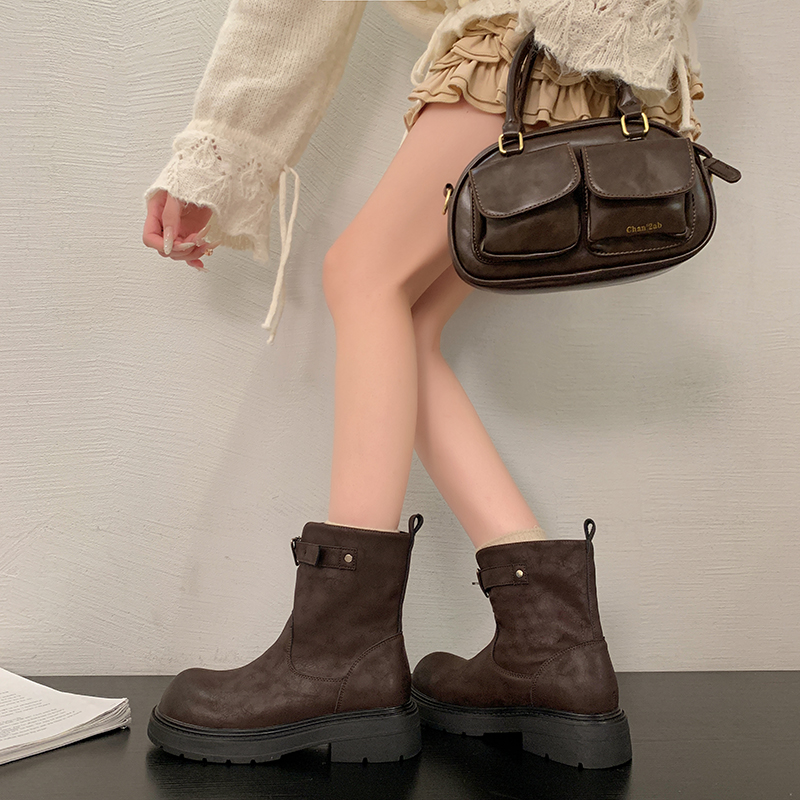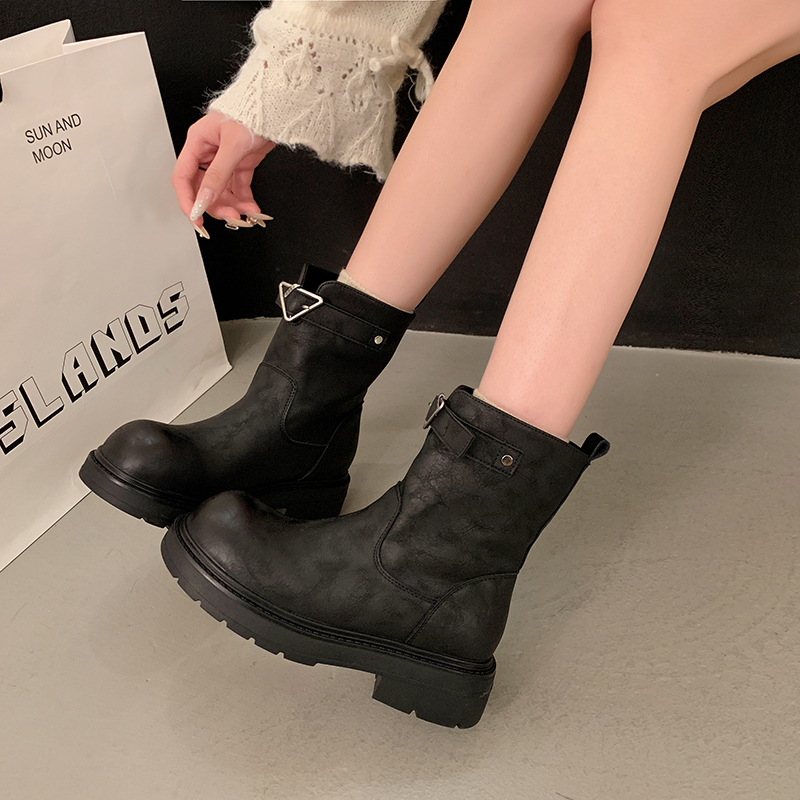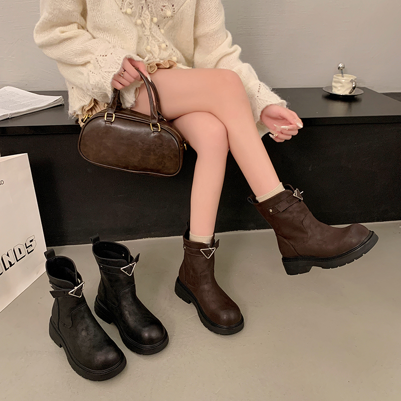 女靴子靴子韩版潮时尚保暖防滑短靴圆头粗跟