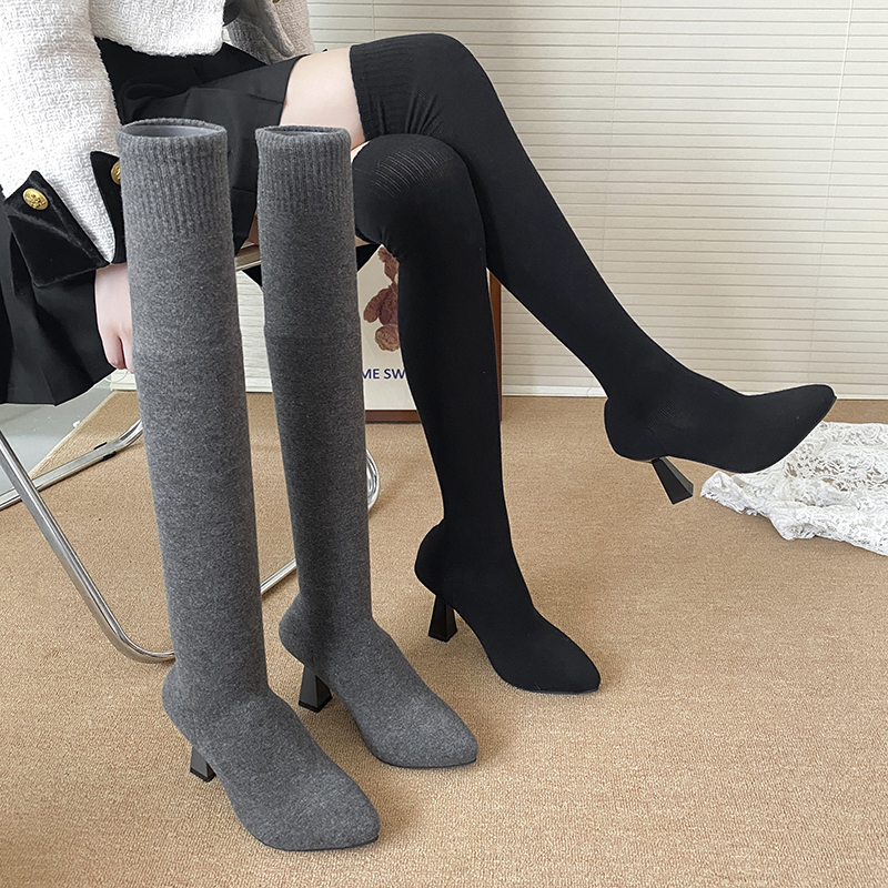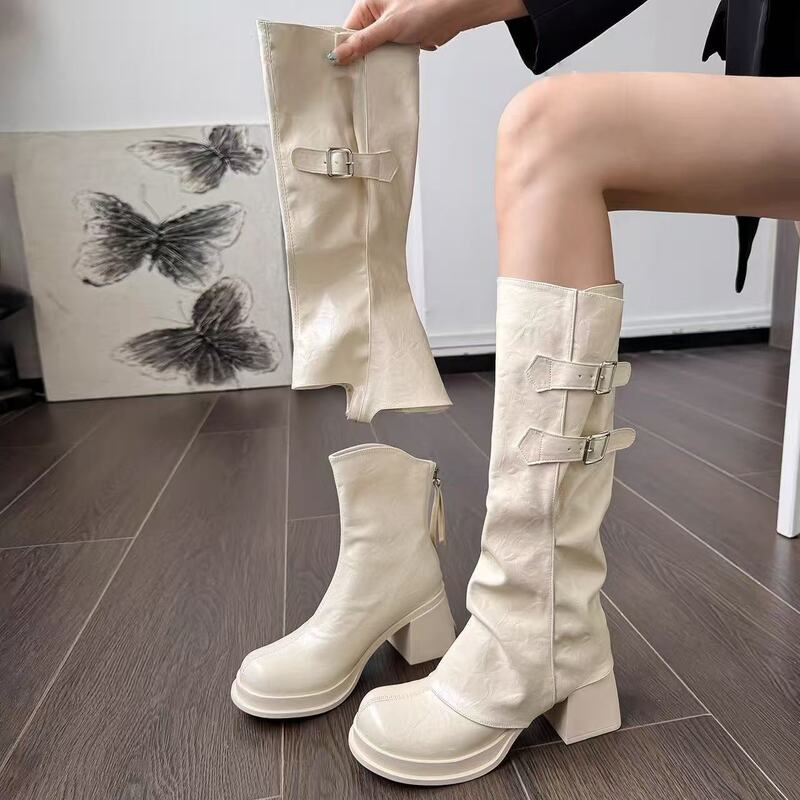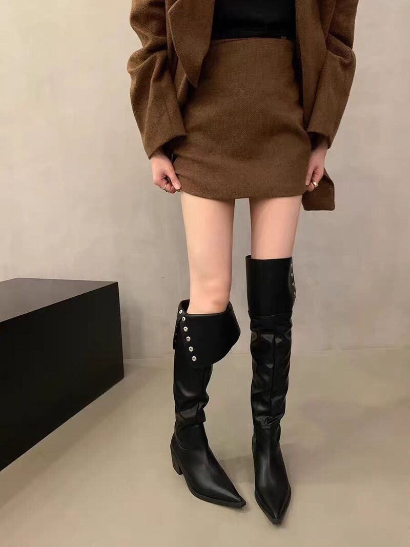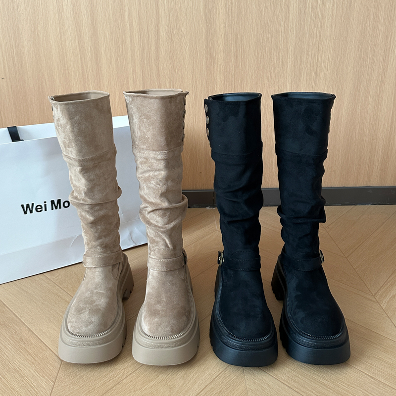 女靴子靴子韩版潮时尚保暖防滑长靴圆头粗跟