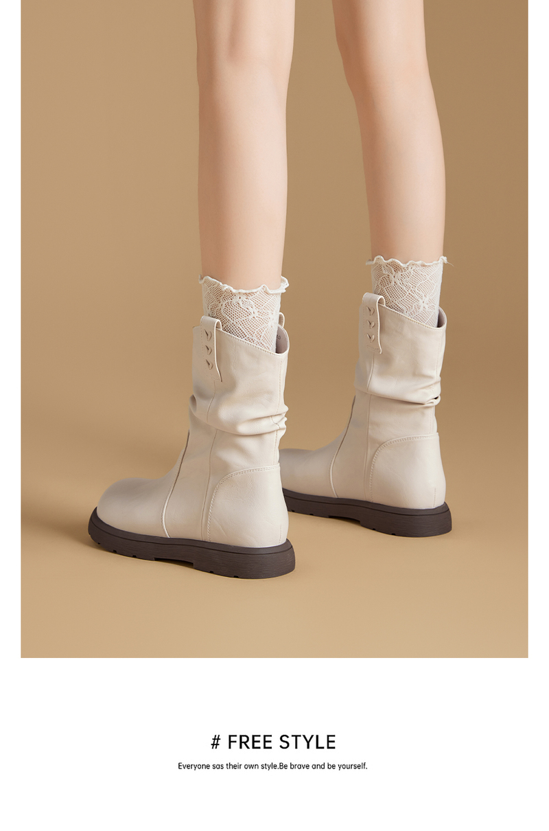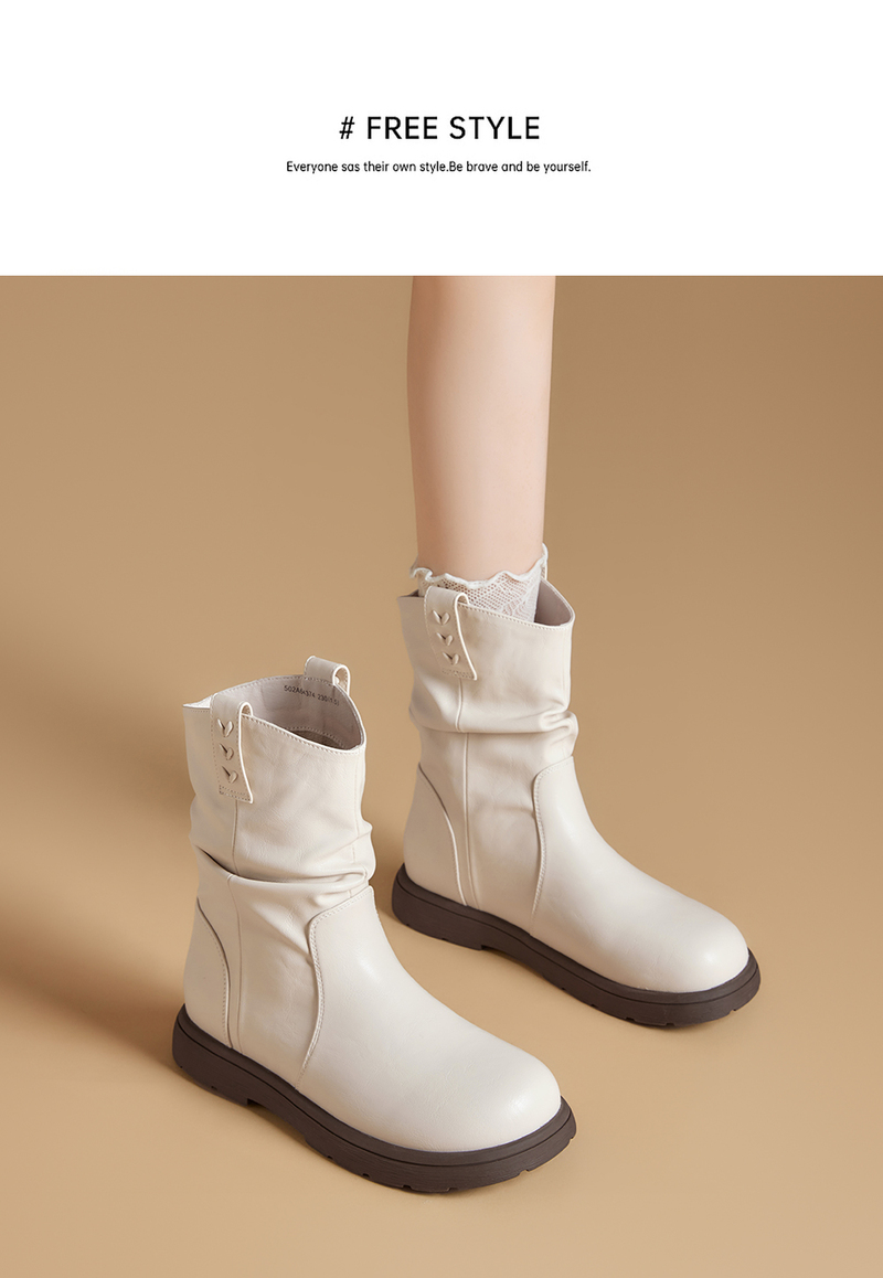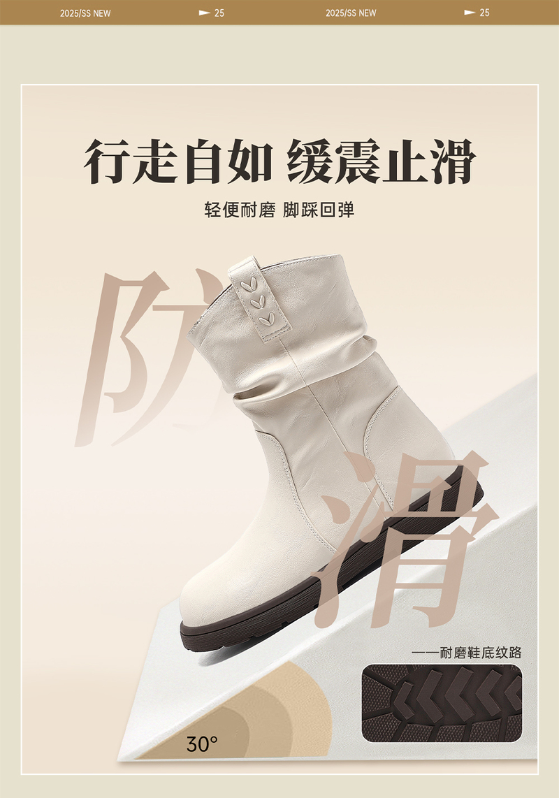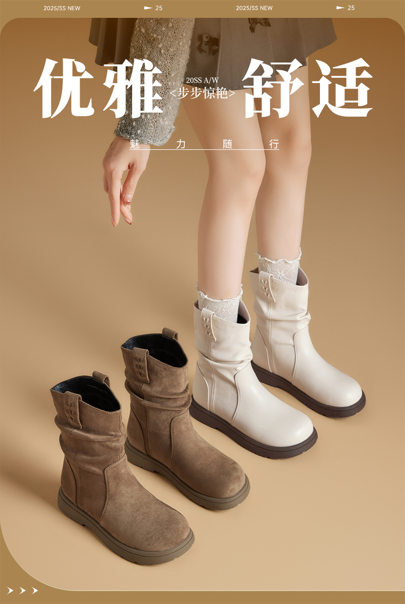 女靴子靴子韩版潮时尚保暖防滑短靴防水台圆头平底鞋