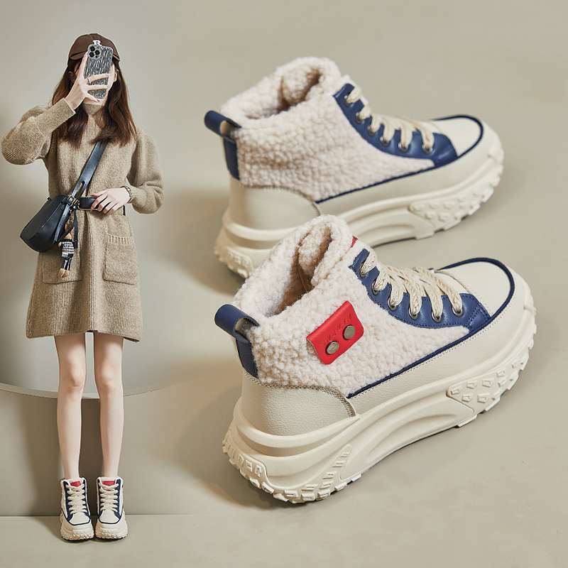2022春季高帮鞋休闲运动鞋女鞋子单鞋高帮鞋欧美英伦时尚