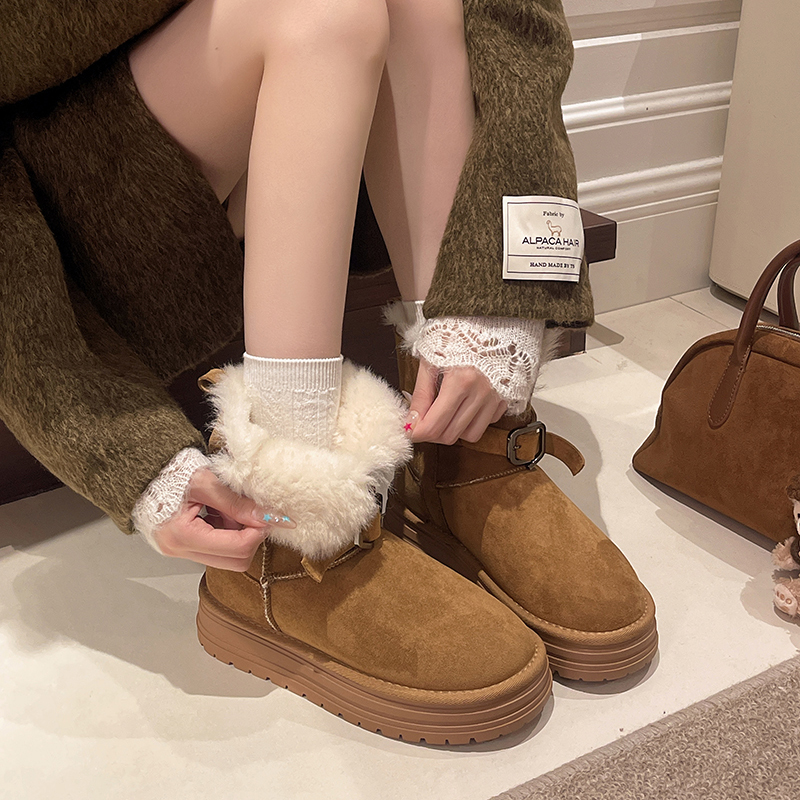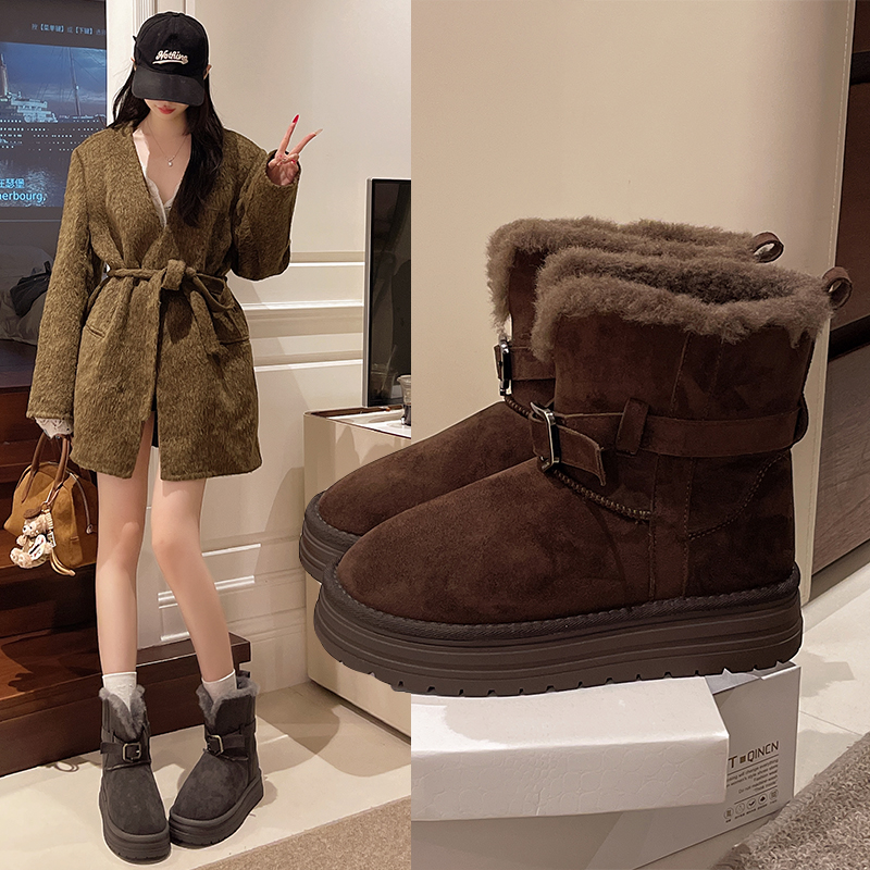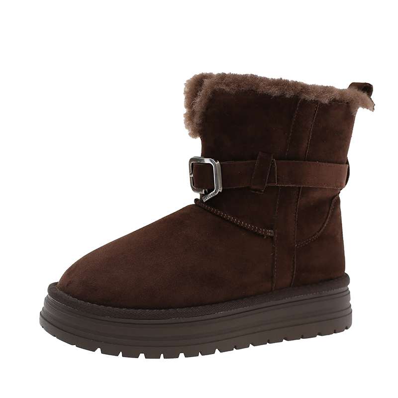 女靴子靴子韩版潮时尚保暖防滑绒面短靴圆头