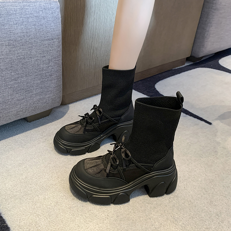 女靴子靴子韩版潮时尚保暖防滑短靴圆头粗跟