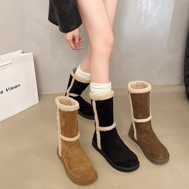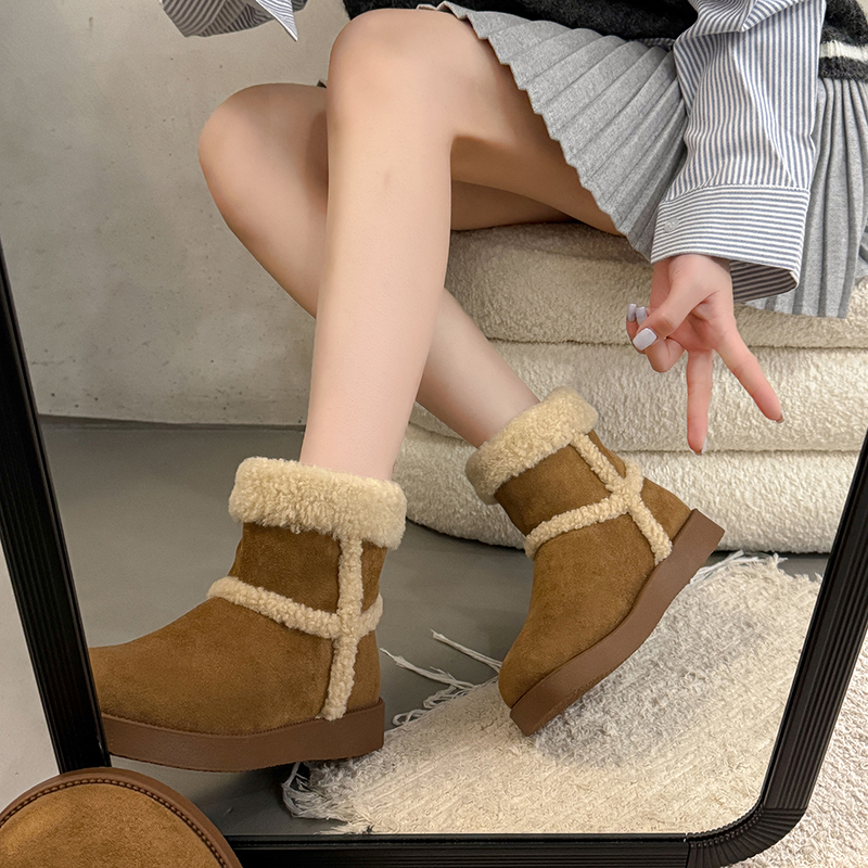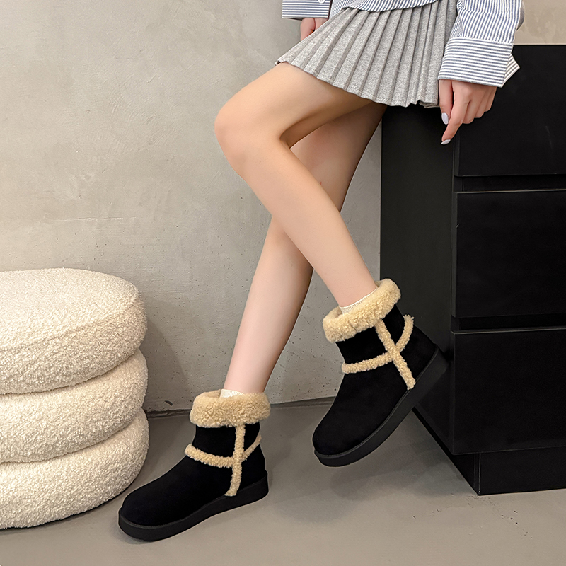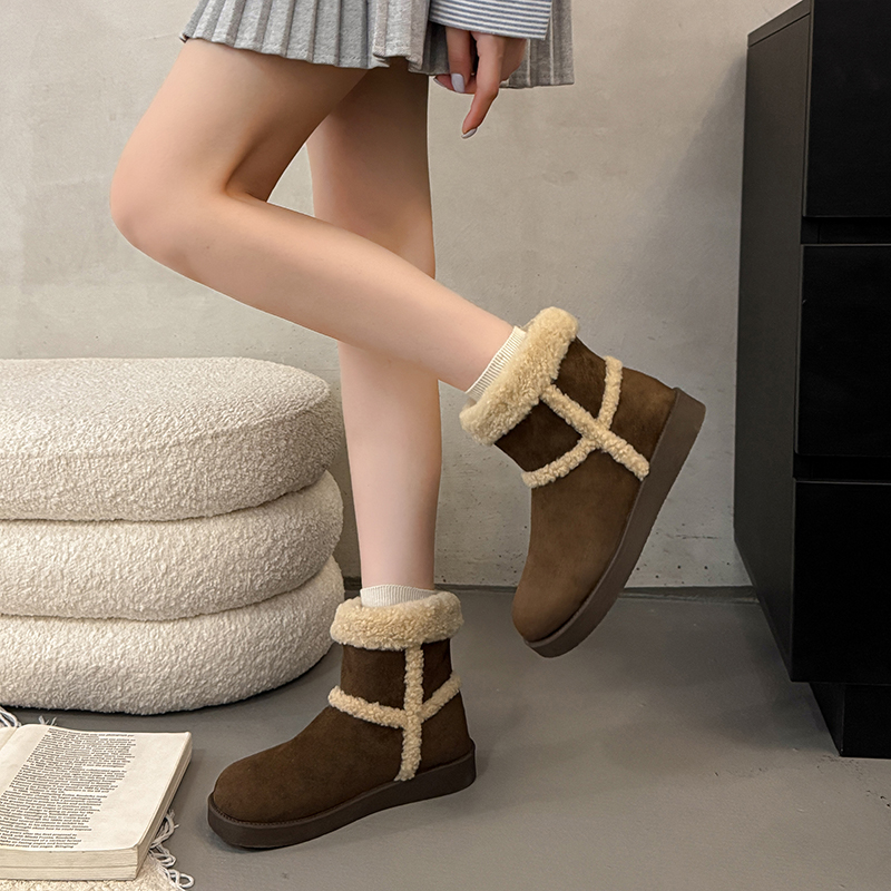 女靴子靴子韩版潮时尚保暖防滑绒面短靴圆头