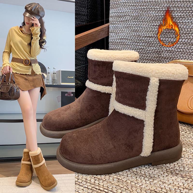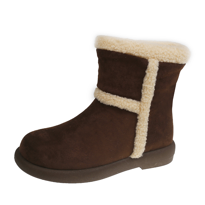 女靴子靴子韩版潮时尚保暖防滑绒面短靴圆头