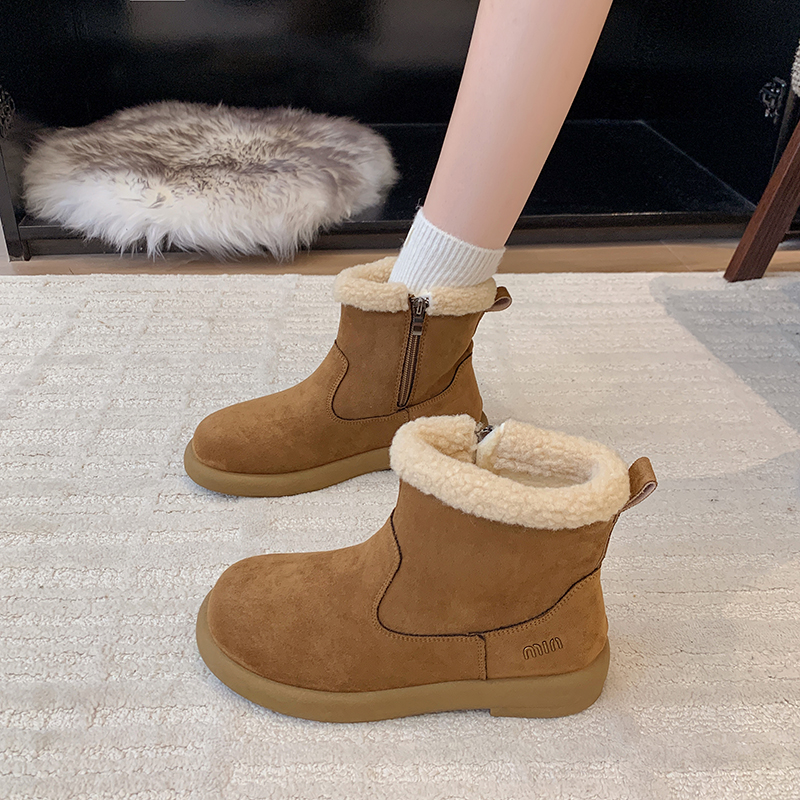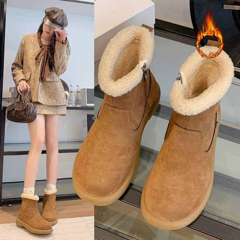 女靴子靴子韩版潮时尚保暖防滑绒面短靴圆头