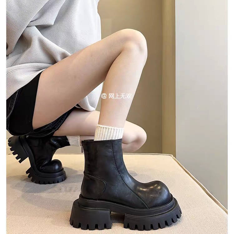 女靴子靴子韩版潮时尚保暖防滑短靴圆头粗跟